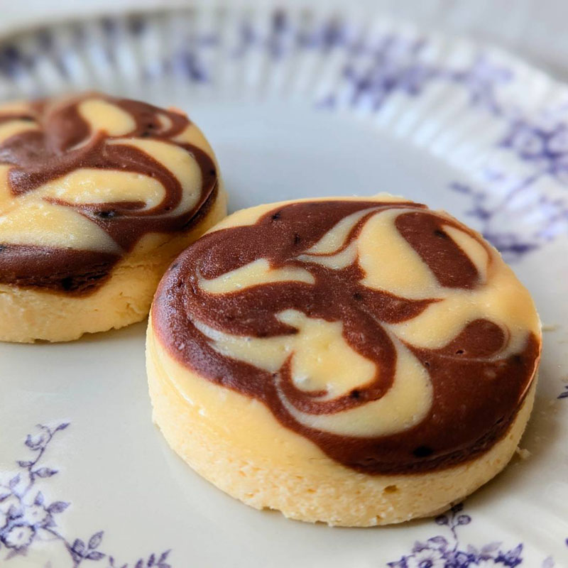 ・チョコレートのマーブル仕上げ:見た目の美しさと味のアクセントを両立した、贅沢な仕上がり。